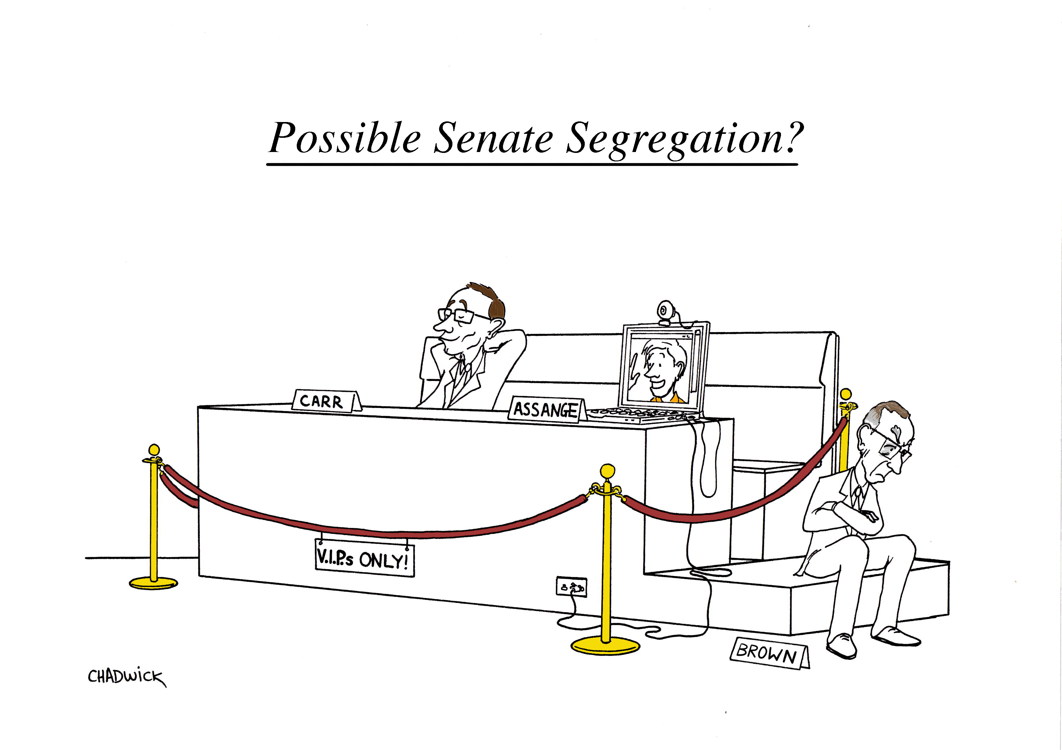 And here I was think the senate was a dull old place where nothing exciting ever happened (apart of course from the essential functions of our governmental system). Turns out that, with Bob Carr making his recent triumphant return to the limelight and the somewhat surprising political activities of Julian Assange/Wikileaks, we might have to get some extra security to protect all the A-list senators 😛