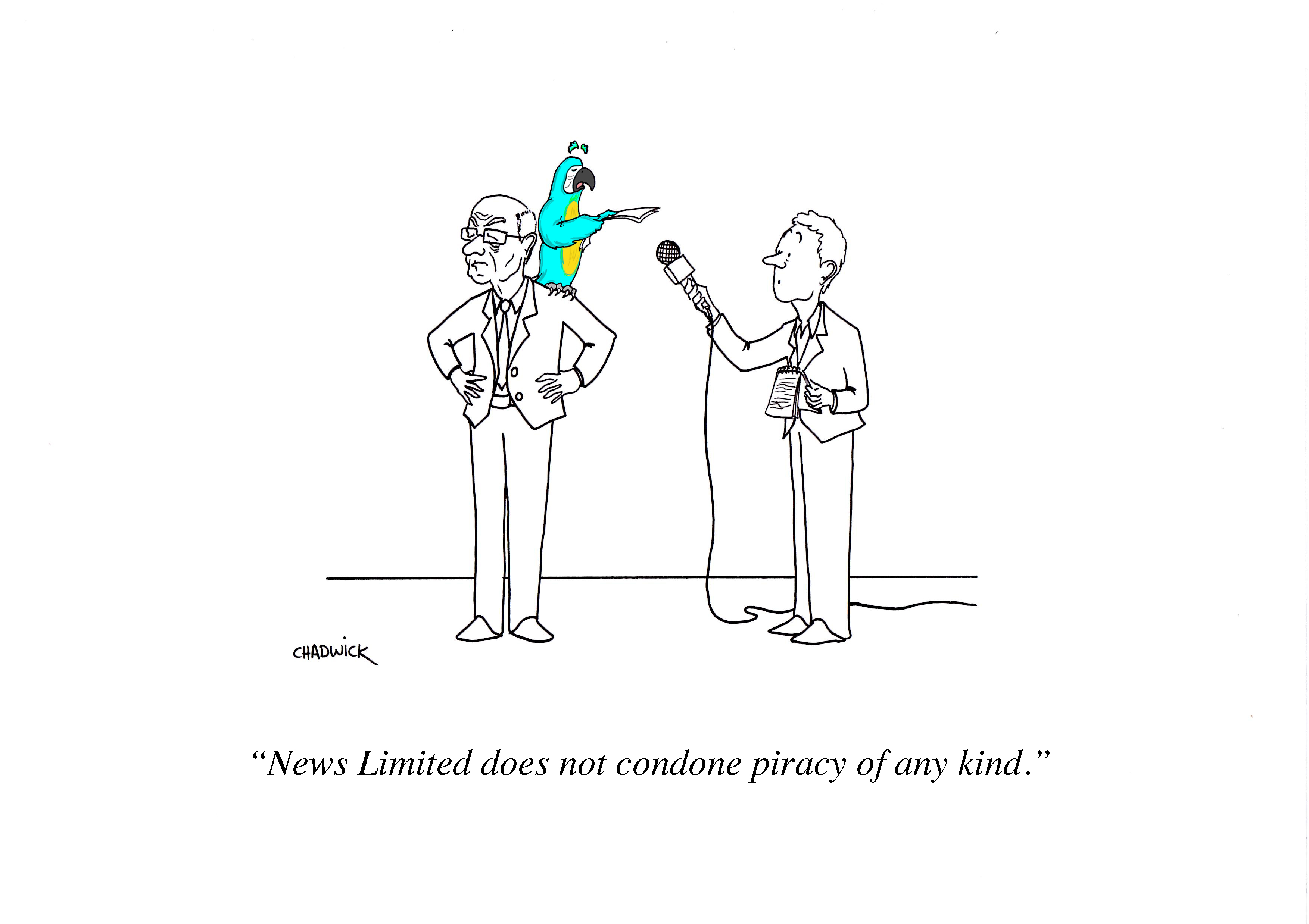 Not like News Ltd needed anymore bad press following their little run in with systematic phone-hacking. Yet still there’s been the accusation made that they were involved in some underhanded dealings over pay TV piracy. I’ve posted cartoons about News as well as the police/journalist phone hacking previously (you can see these in the Politics and Current Affairs section along with this newie) but I couldn’t resist the imagery of Rupert with a parrot – a parrot I’ve since dubbed Polly the PR Parrot :).