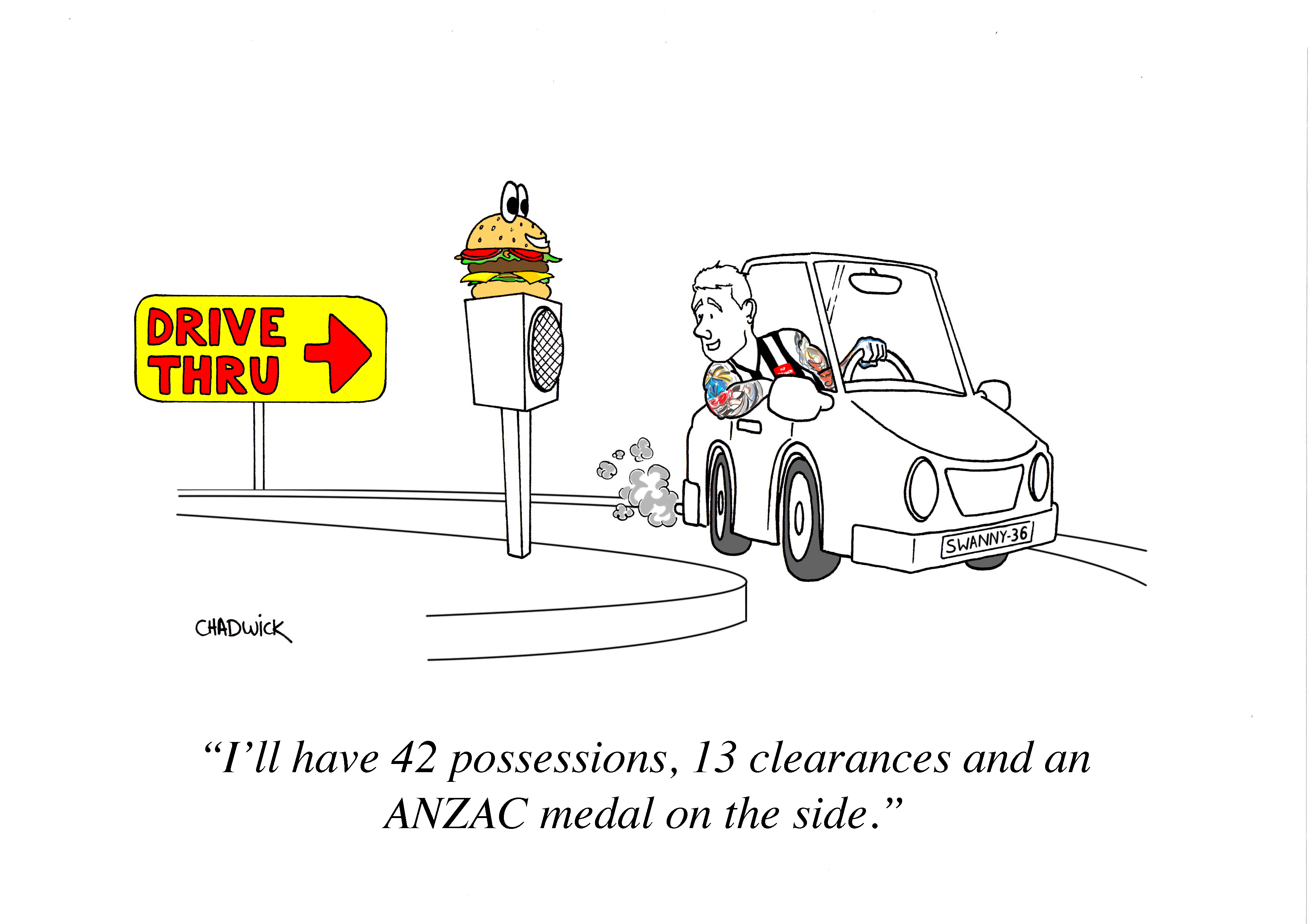 On a cold and rainy Wednesday our mighty Pies and the Bombers slugged out another classic ANZAC Day heart stopper. Collingwood lead for most of the afternoon but Essondon wouldn’t lie down. They hit the front, our boys came back and Dane Swan finished off his ANZAC Day medal winning performance with a key mark in the dying seconds. Swanny was on fire all day and put those pesky weight watching doubters in their place with a magnificent all-round game. Mountains of possessions, clearances, goals. Essentially doing it all and driving the Pies to an important victory.