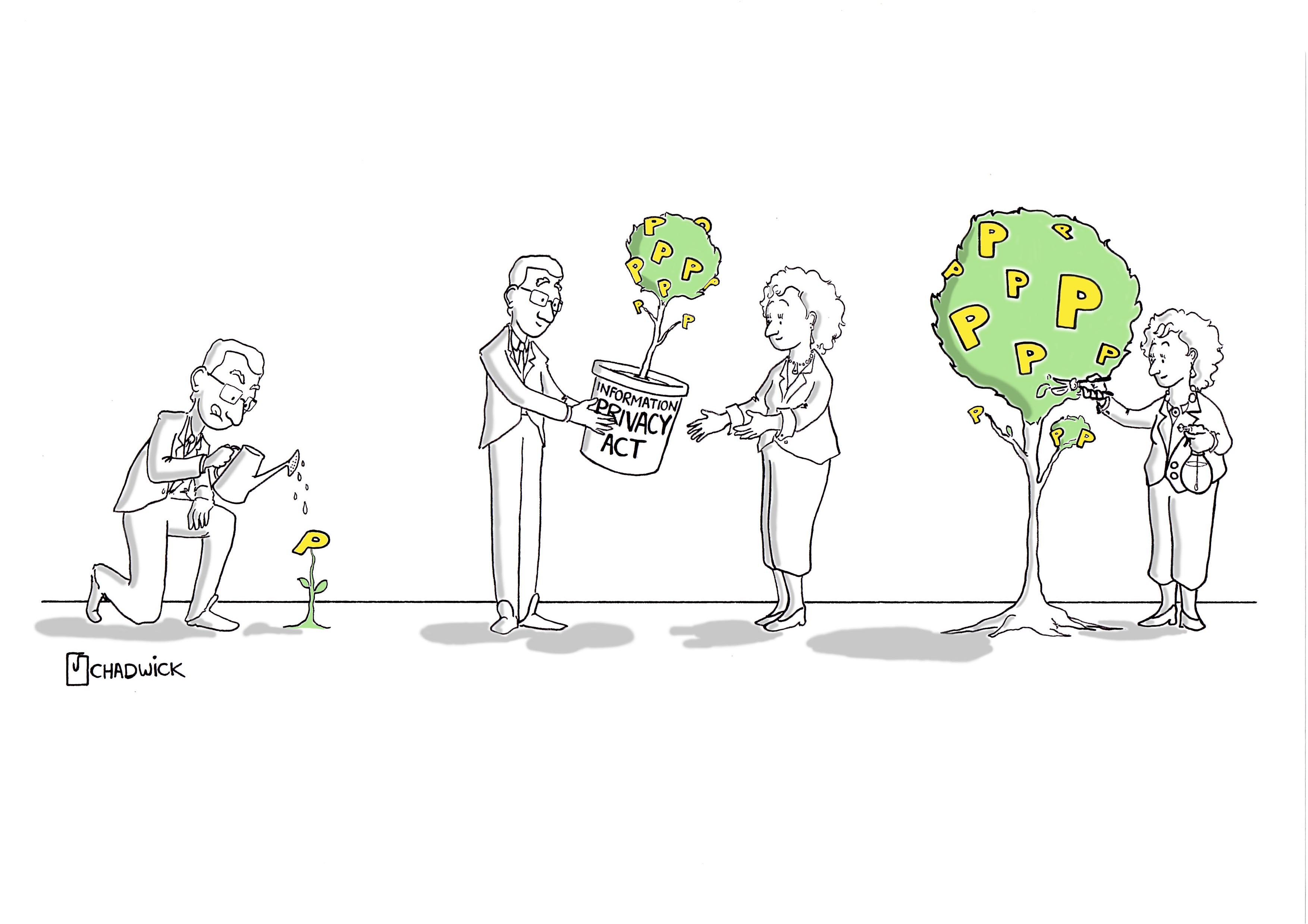 Commissioned by the Office of the Victorian Privacy Commissioner. Used as the front cover illustration for a publication celebrating ten years since the formation of the office in Victoria and the implementation of the Information Privacy Act.